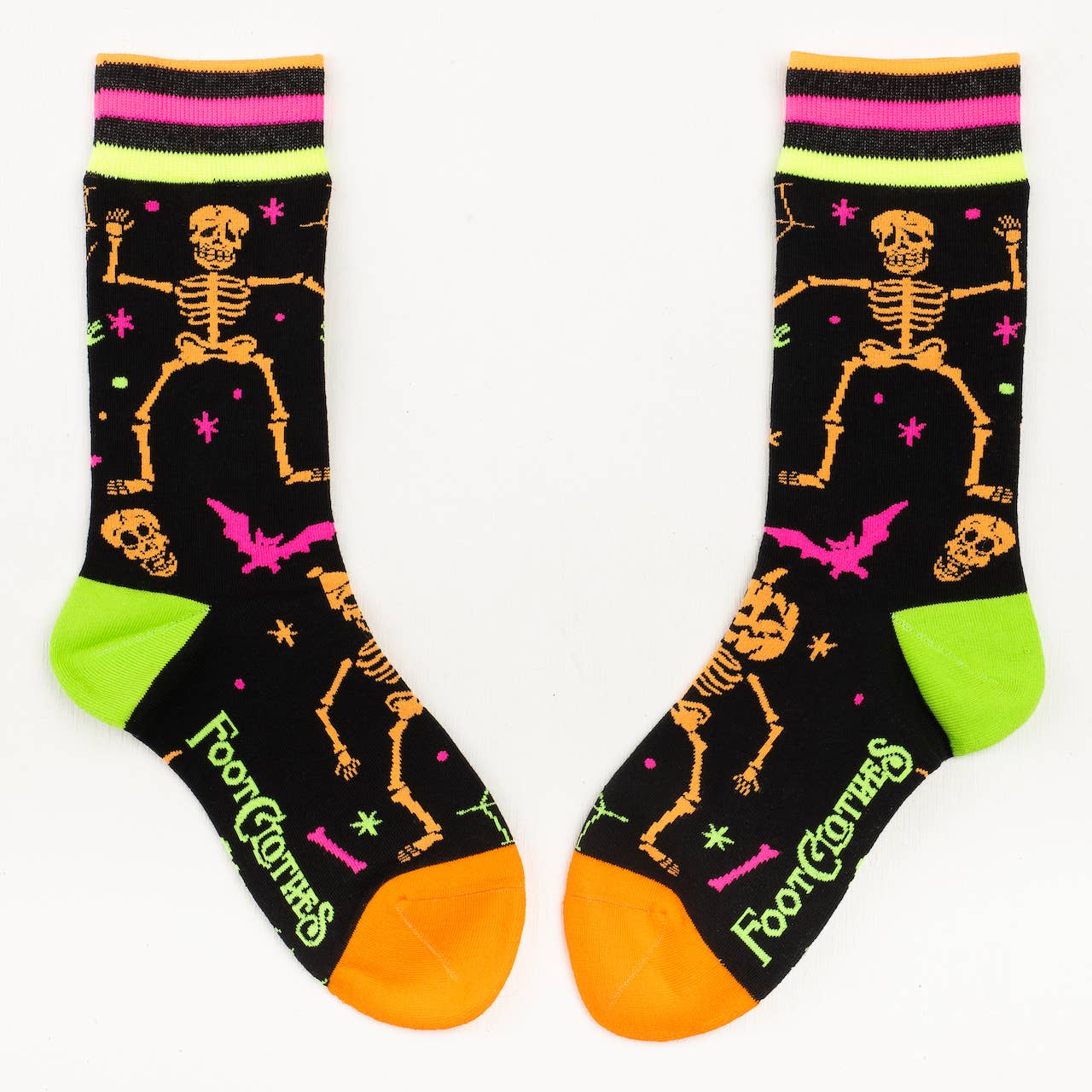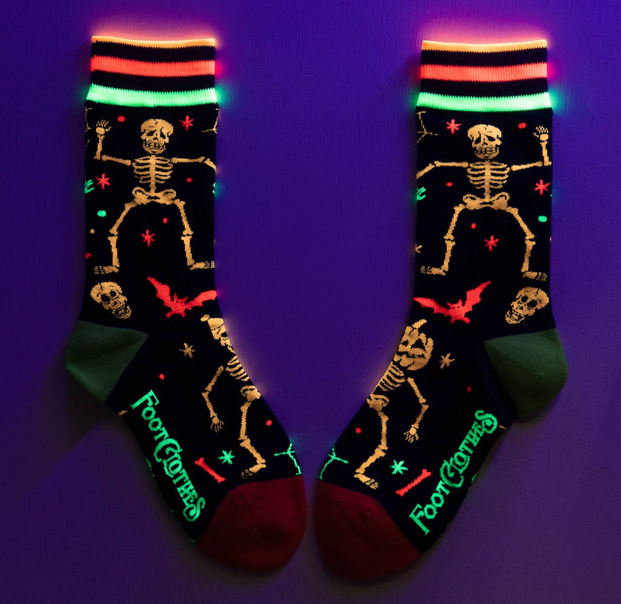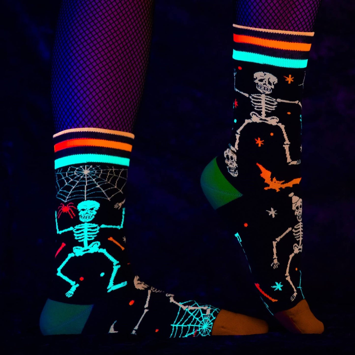 We like to think these socks are the physical manifestation of the EDM remix of that spooky, scary, skeletons song. UV. Reactive. Rave. Party. Skeletons.