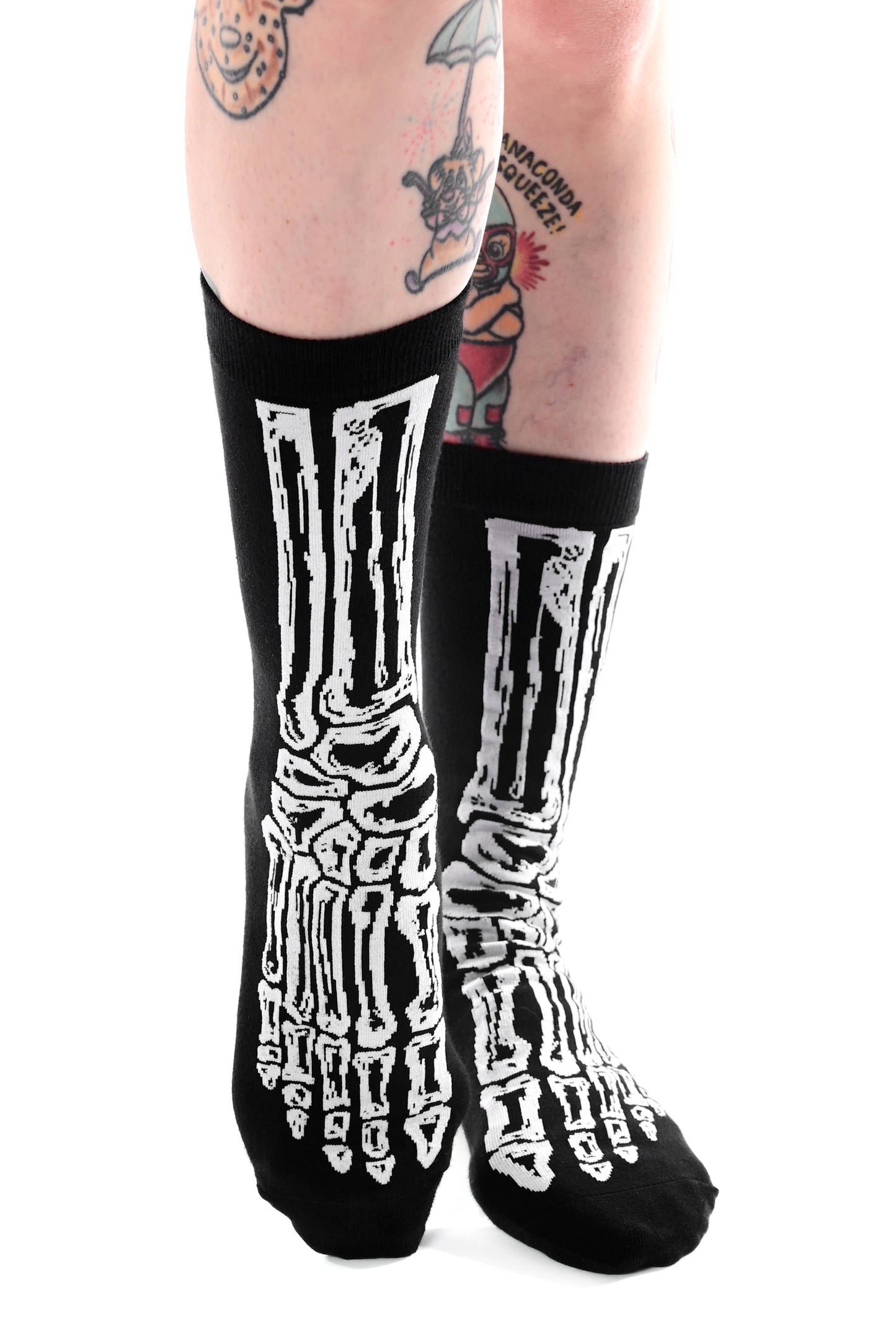 Black socks with comfort toe and white skeleton feet (drawn by us - No Ai art around here ever!)