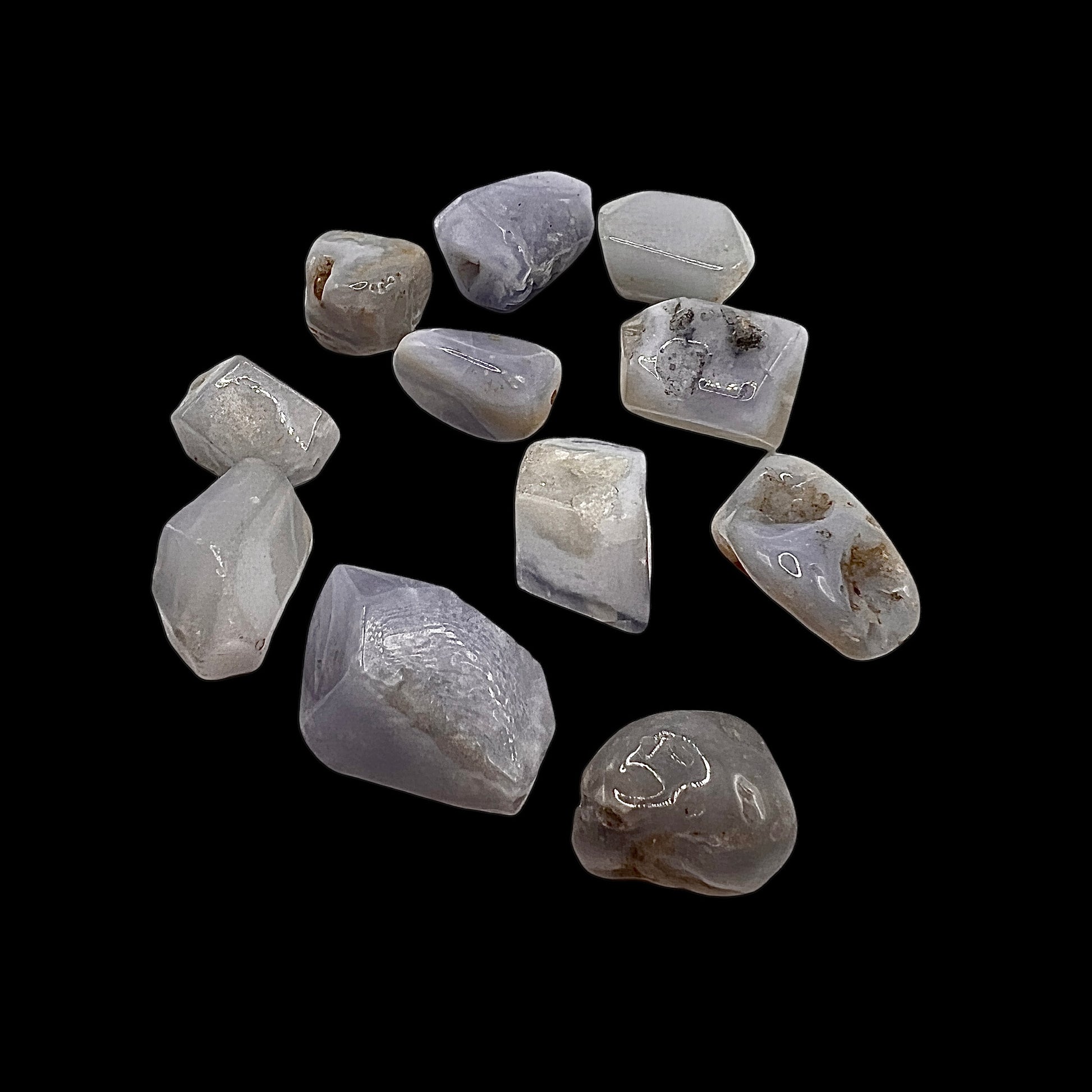 Stone of Communication, Soothing Stone, & Stone of Diplomat. Blue Lace Agate stones enhance verbal communication and expression of thoughts and feelings. Blue Lace Agate is both a grounding stone and a spiritual stone. Blue Lace agate is a calming stone and can help with worry and depression. Blue Lace Agate stones are nurturing and supportive it can neutralize anger, and calms a troubled mind. It also enhances peace, love and happiness. Blue Lace Agate can invite peace and prosperity. Blue Lace Agate is an emotional healing stone, it can aid in confrontations and uncomfortable situations.