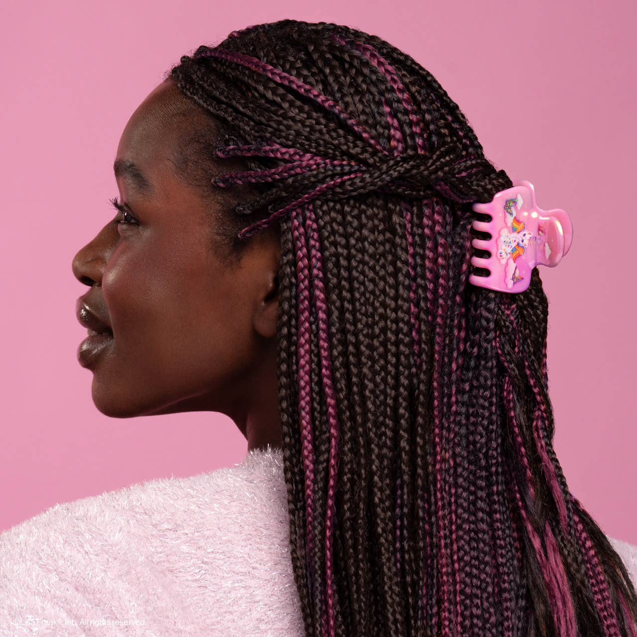 -Add a splash of color to your style inspired by Lisa Frank® shinny cat Angel Kitty™ -Great for half-up styles, buns, and everyday updos -Lightweight, durable, and easy to wear Why You'll Love This -The arch-shaped style keeps your hair gently locked in place all day -Made from recycled plastic for a sustainable and stylish hair routine