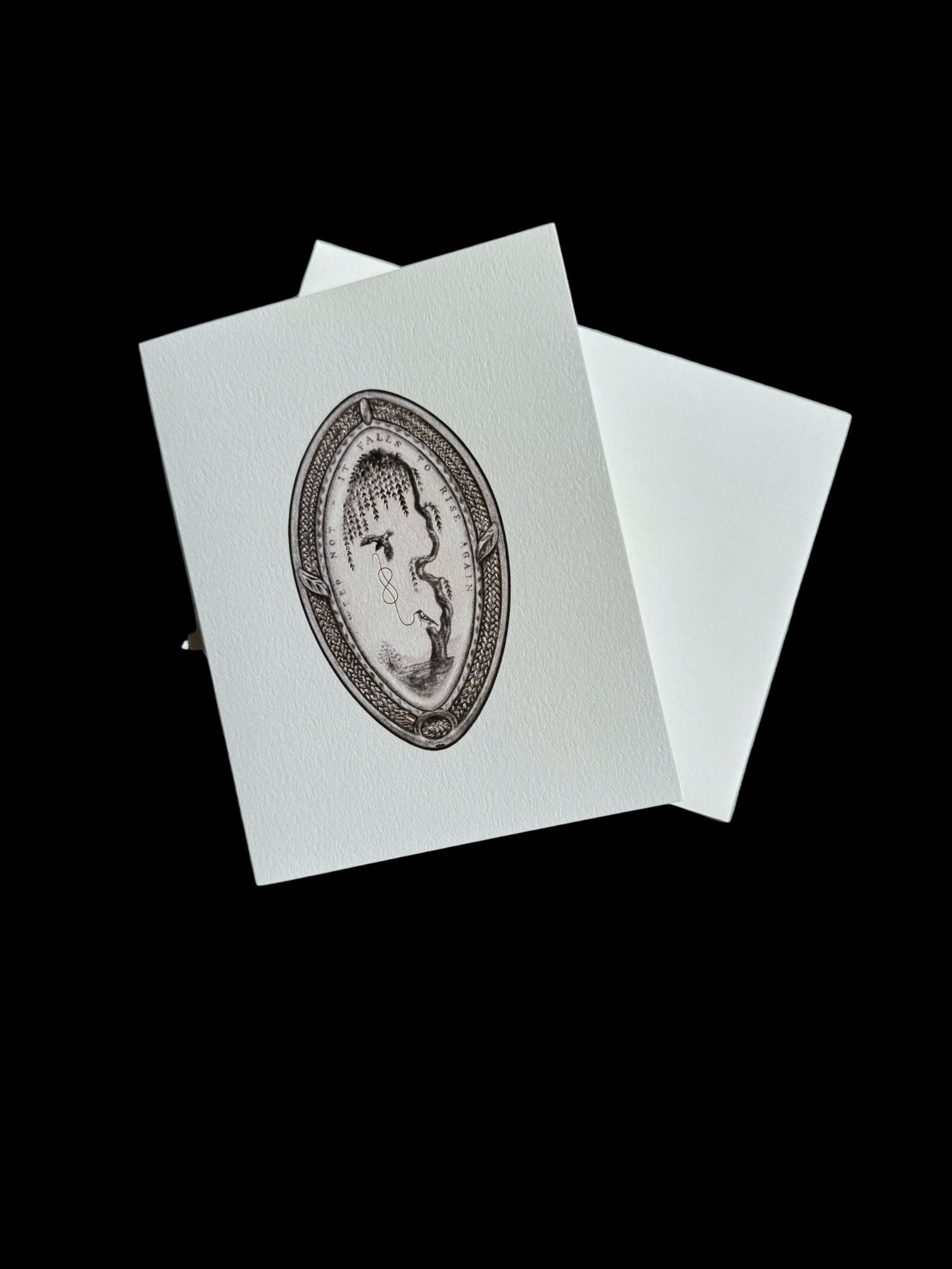 Honor the passing of a loved one with our Weep Not Greeting Card. Featuring a solemn weeping willow and hair mourning design, this card offers a heartfelt way to express your condolences. Printed on high-quality paper, it is a beautiful and respectful gesture for those going through a difficult time. A2 Folded Card